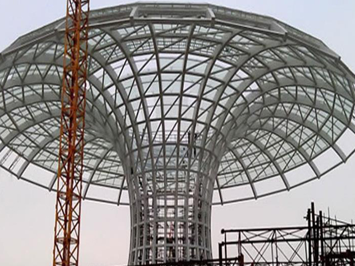 二、球形网架结构因其结构新颖,受力合理,自重轻、用钢量低等优点。如大型体育场馆球形绥化螺栓球网架、公共场馆球形网架、电厂绥化螺栓球网架、水泥工业球形网架、仓储物流球形网架、绥化干煤棚工业球形网架、绥化收费站绥化加油站球形网架、展览中心、影剧院、商场、航站楼、候车厅、工厂绥化车间、仓库、电视塔等球形螺栓球节点网架。国内球形网架结构主要分为:绥化焊接球节点网架及螺栓球节点网架两种。螺栓球节点网架其构件工厂内加工量较大,现场安装便捷,适用于现场工期紧,绥化施工条件、用电量受制约,网架形状复杂、绥化杆件定位困难的异形结构。螺栓球节点球形网架系统基本由绥化杆件、螺栓球、支撑支座等组成。按照节点形式可分为交叉绥化桁架体系、四角锥体系、三角锥体系等。支撑方式多为固定支座支撑。对于大面积、大跨度及有特殊受力或伸缩要求的网架结构可采用橡胶支座、滑移支座、球铰支座等支撑形式,以满足结构自身的受力稳定、均衡,便于内力释放等设计要求。